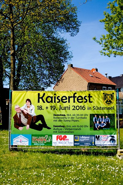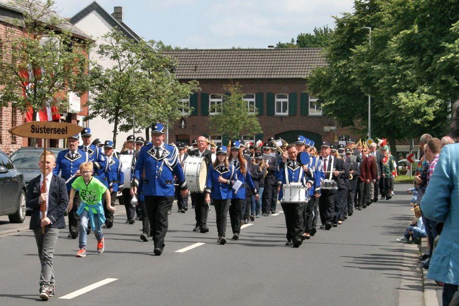 Rund um Süsterseel hatte die freiwillige Feuerwehr für den Festzug alles abgesperrt, für Stunden war der Ort fast autofrei. Das galt auch für das Kaiserpaar, denn der Oldtimer machte schlapp. Die beiden nahmen es gelassen und freuten sich über viele Kirmesgäste am Straßenrand, die im Verlauf des Tages auch auf dem Dorfplatz weiterfeierten.