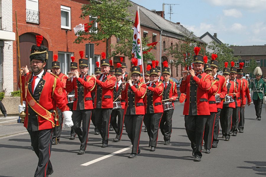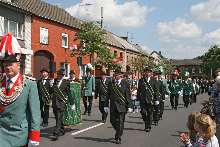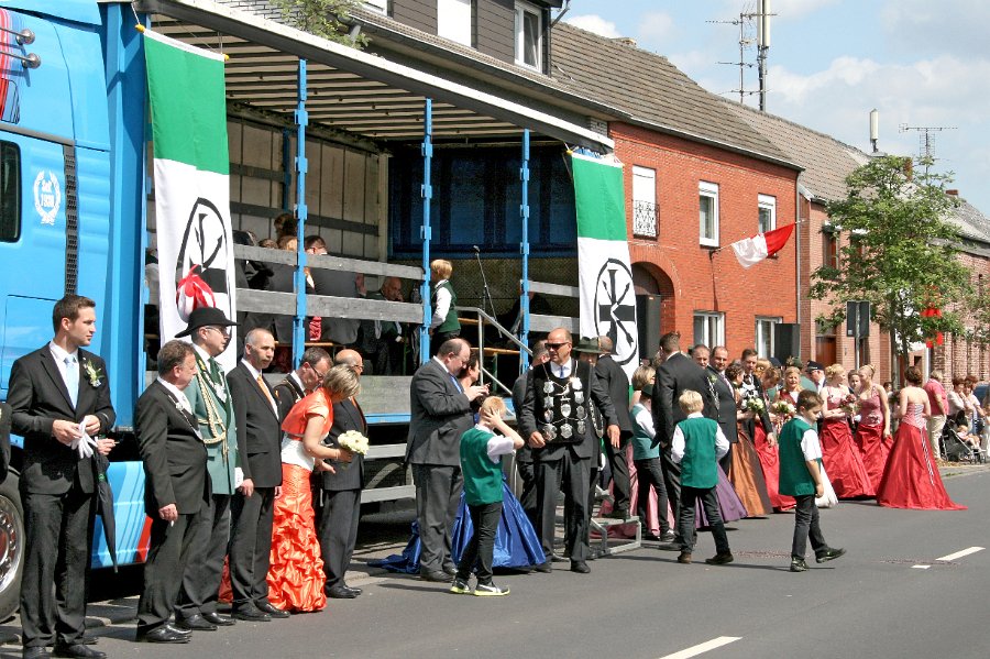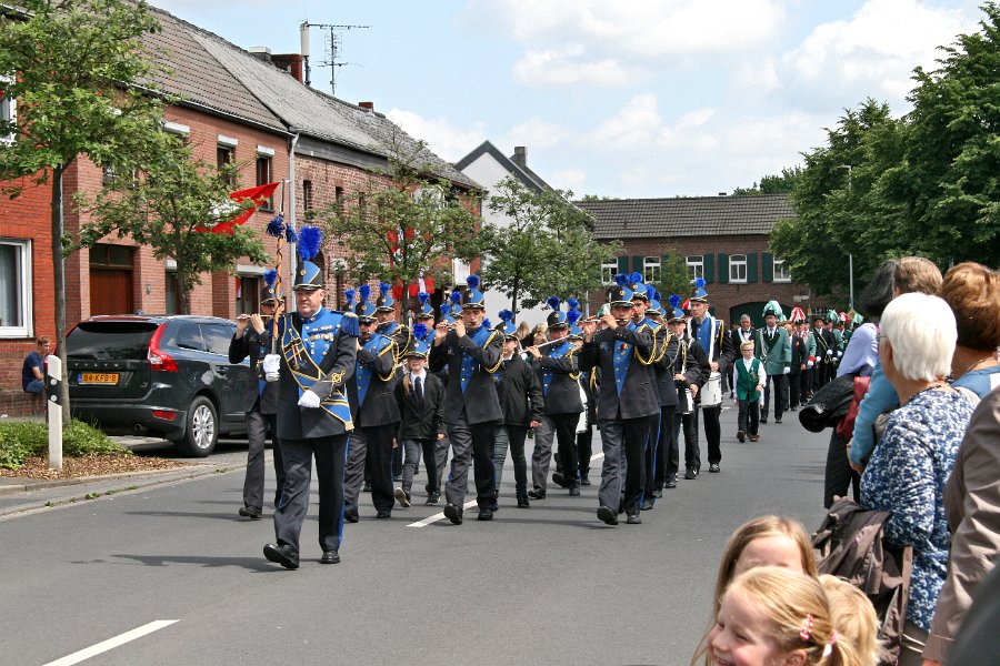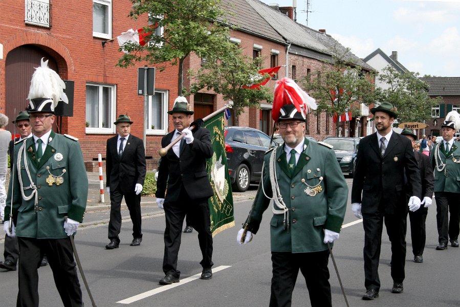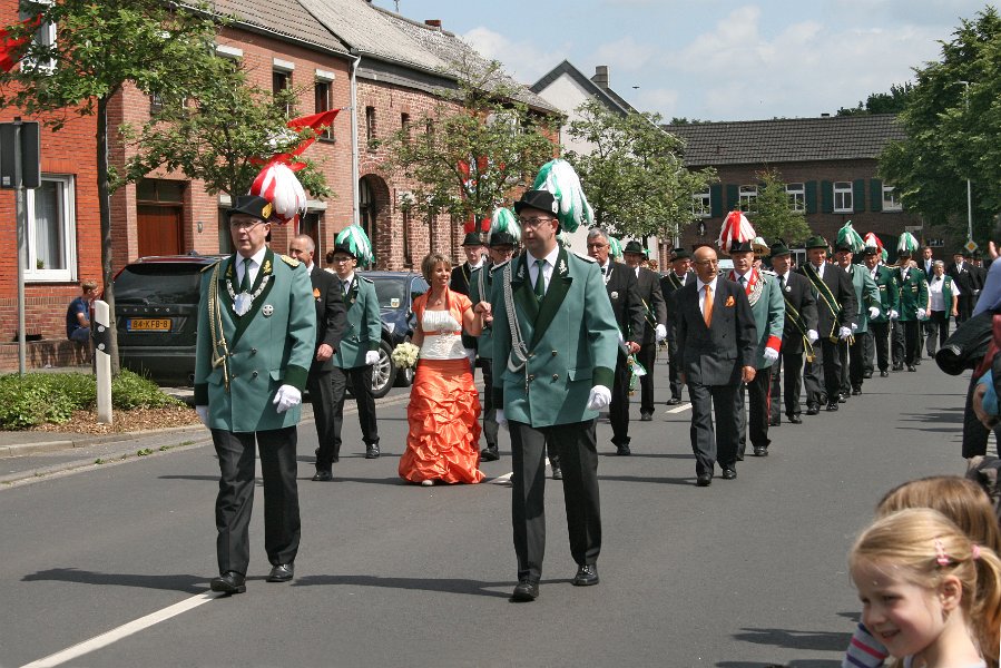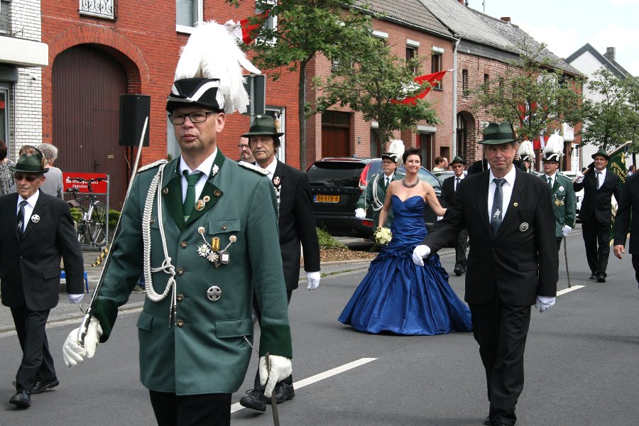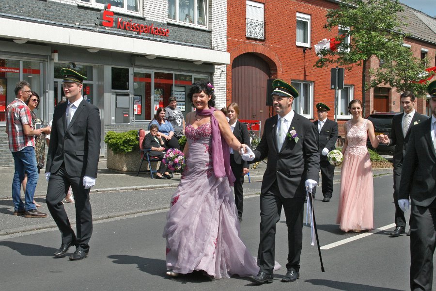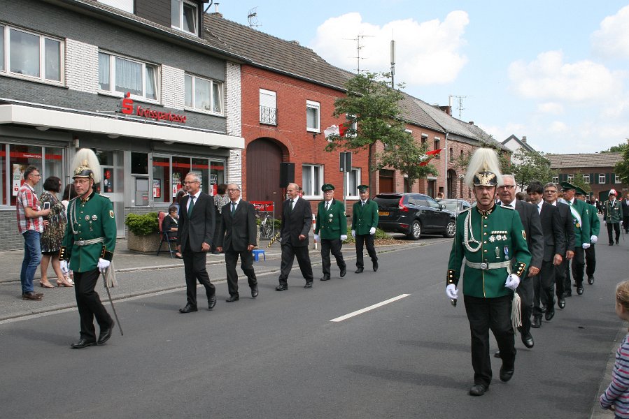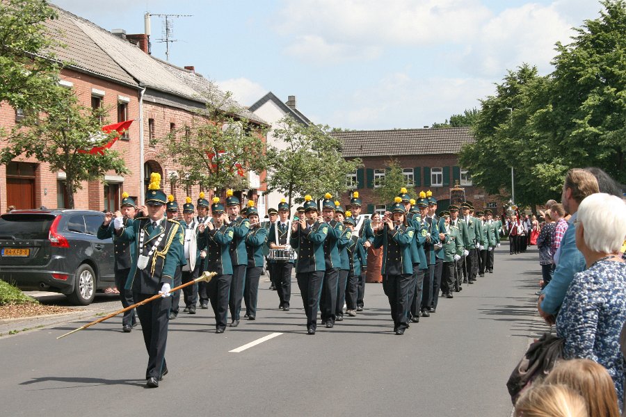 Der Sonntag brachte bestes Kaiserwetter, auf dem Dorfplatz tummelten sich die Schützenbruderschaften sowie die Spielmannsleute. Bis auf eine Selfkant-Schützenbruderschaft gratulierten alle Selfkantvereine mit ihrer Teilnahme am Festzug. Begrüßt wurde auch eine Gangelter Schützenbruderschaft.