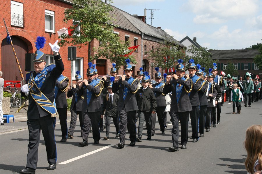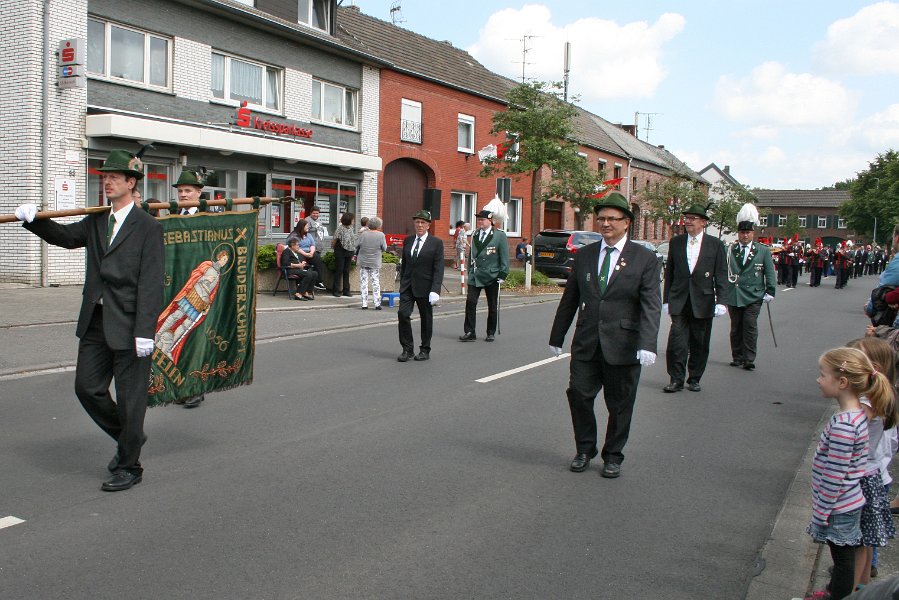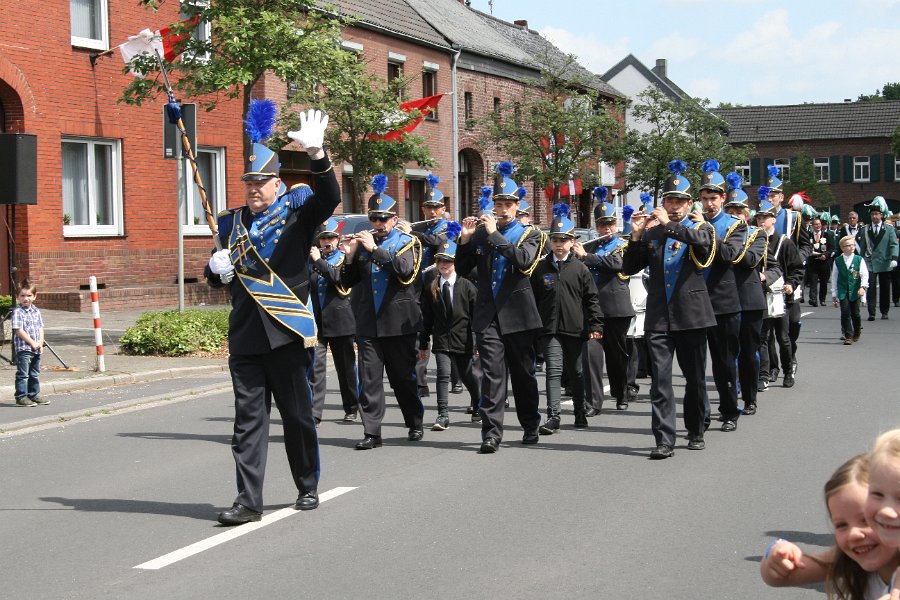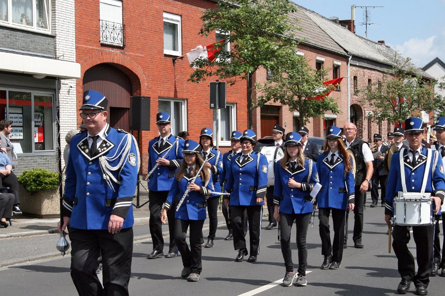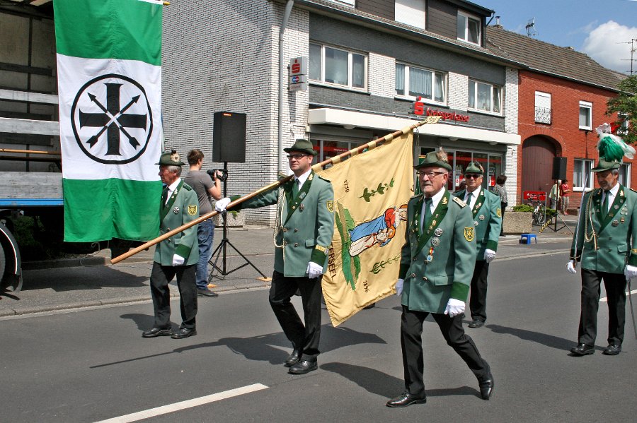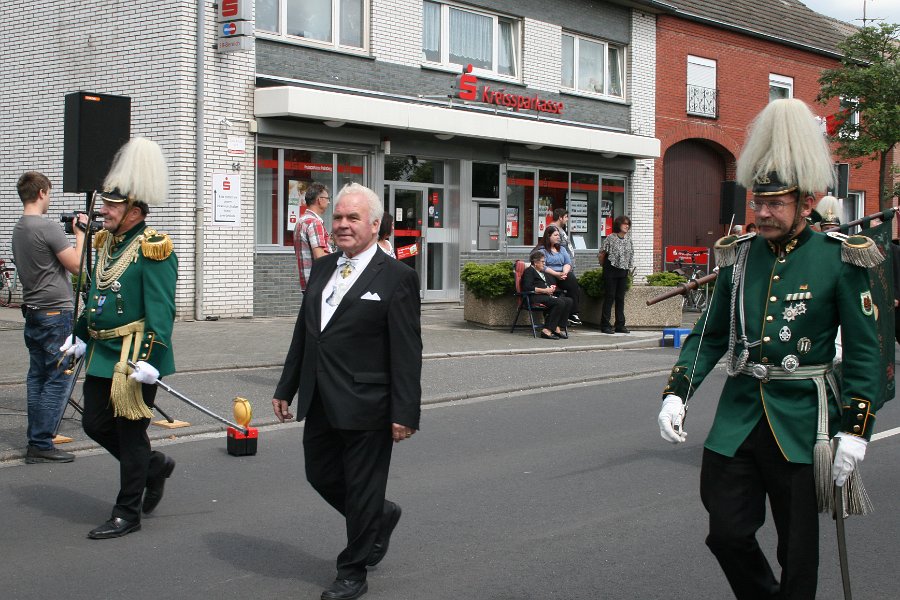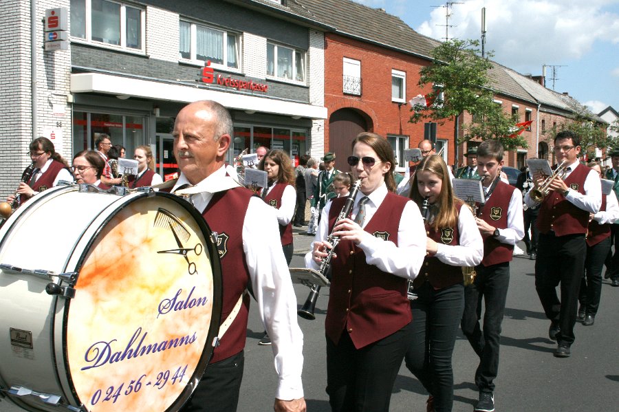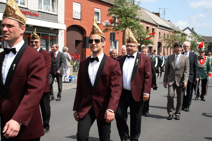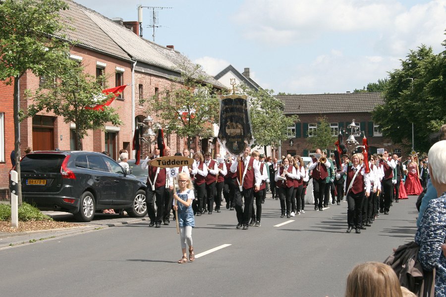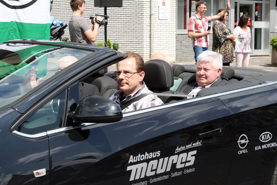 Der Sonntag brachte bestes Kaiserwetter, auf dem Dorfplatz tummelten sich die Schützenbruderschaften sowie die Spielmannsleute. Bis auf eine Selfkant-Schützenbruderschaft gratulierten alle Selfkantvereine mit ihrer Teilnahme am Festzug. Begrüßt wurde auch eine Gangelter Schützenbruderschaft.