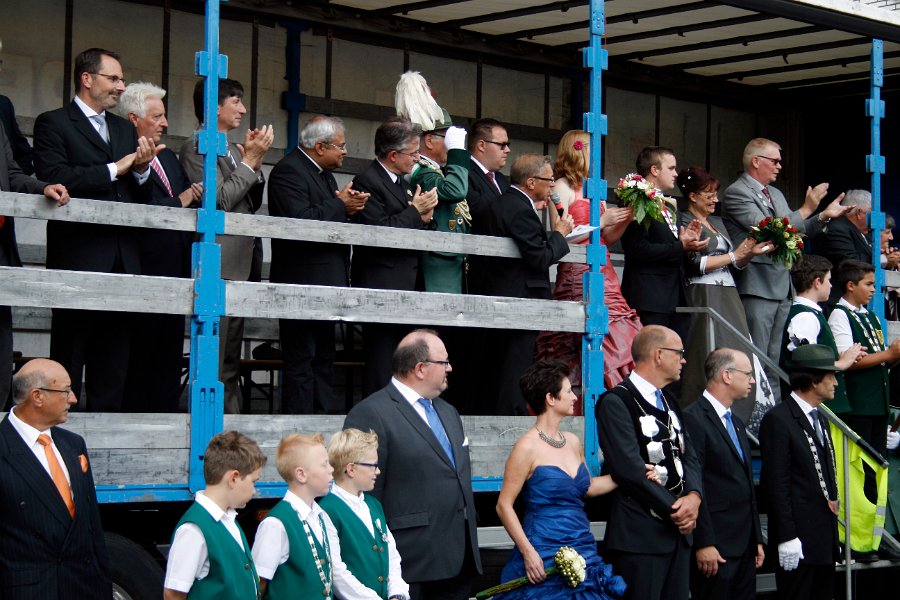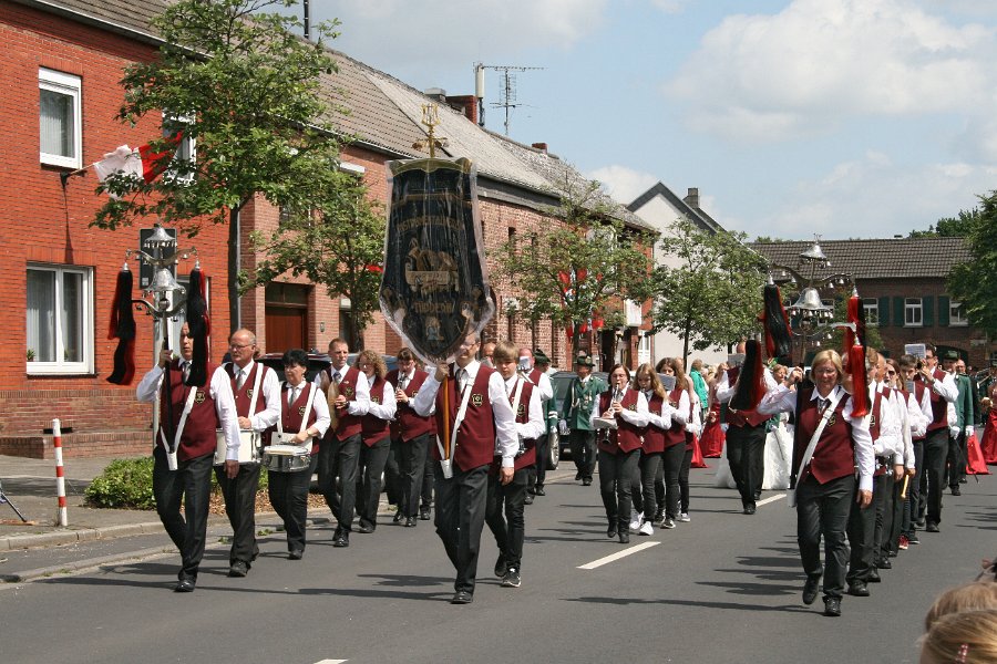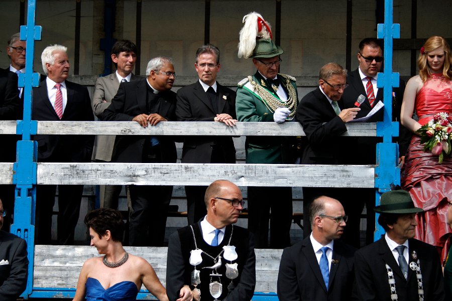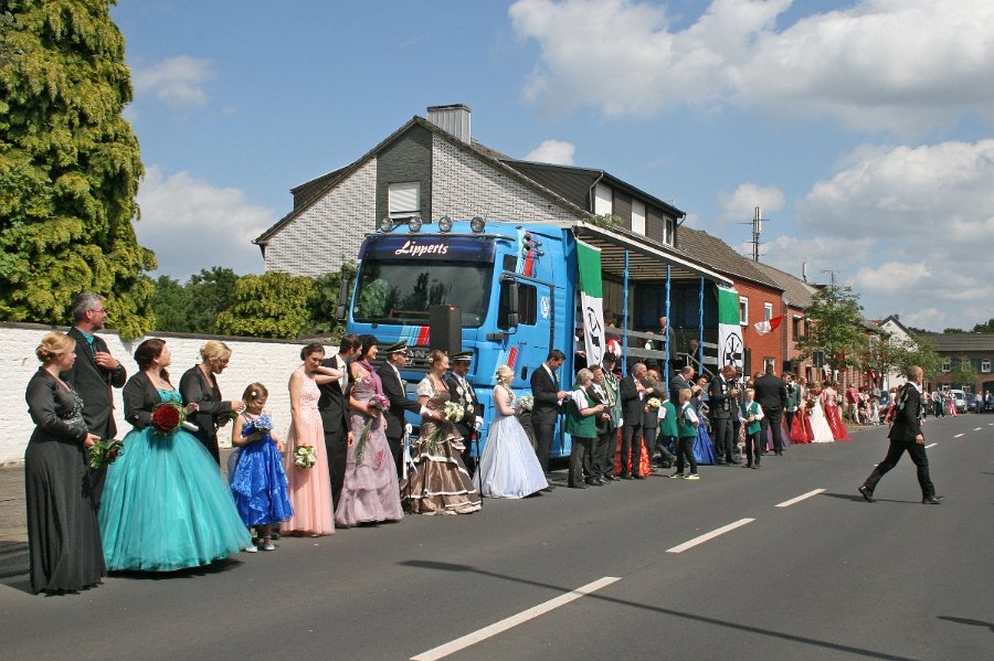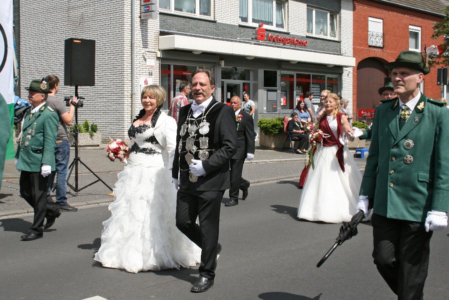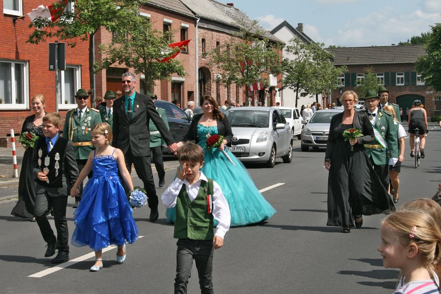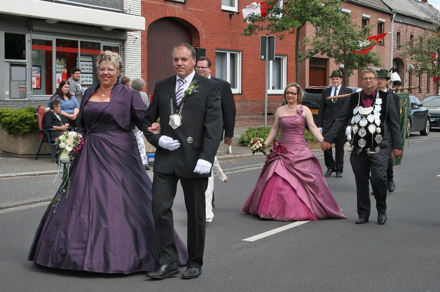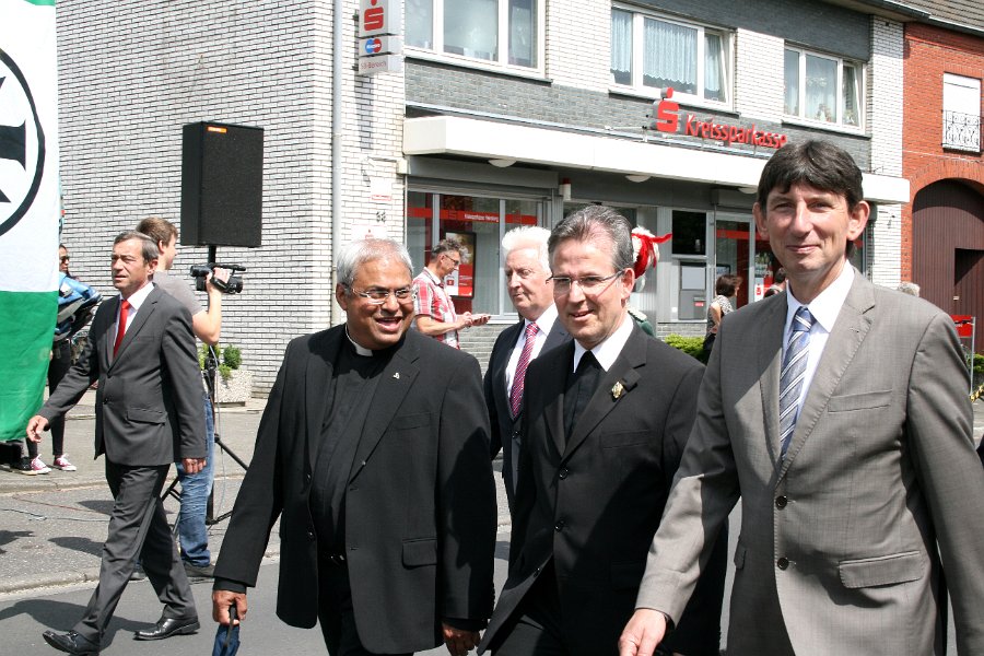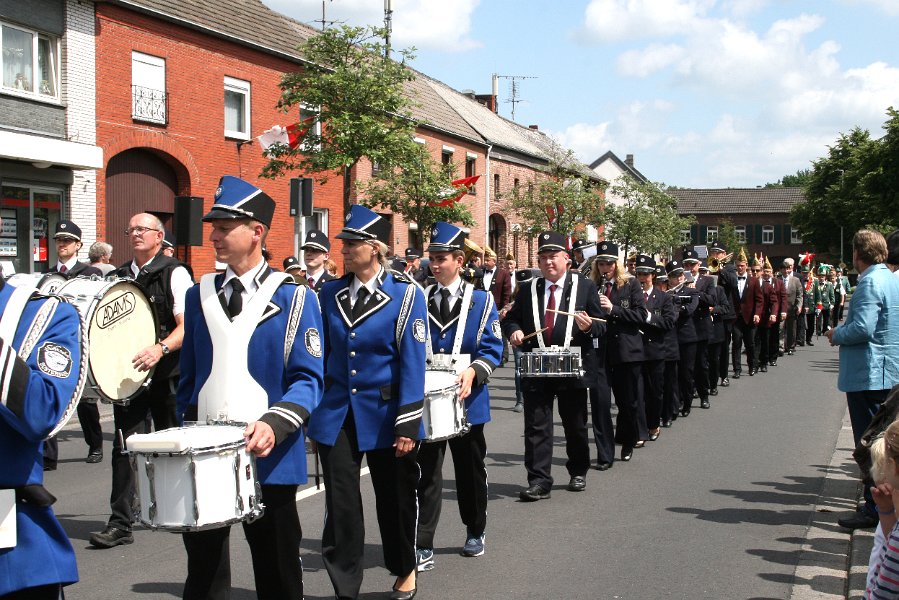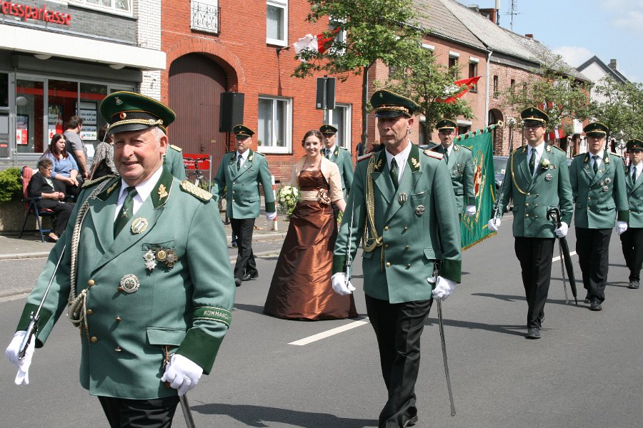Der Sonntag brachte bestes Kaiserwetter, auf dem Dorfplatz tummelten sich die Schützenbruderschaften sowie die Spielmannsleute. Bis auf eine Selfkant-Schützenbruderschaft gratulierten alle Selfkantvereine mit ihrer Teilnahme am Festzug. Begrüßt wurde auch eine Gangelter Schützenbruderschaft.
