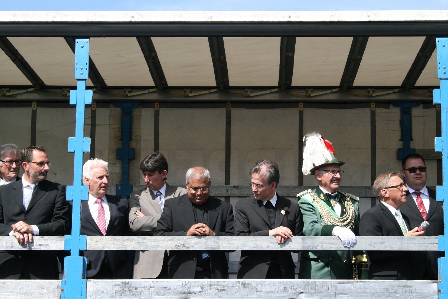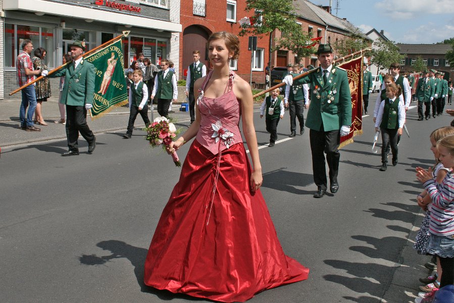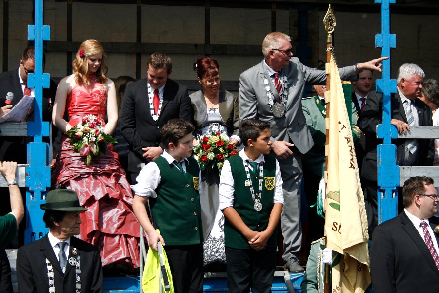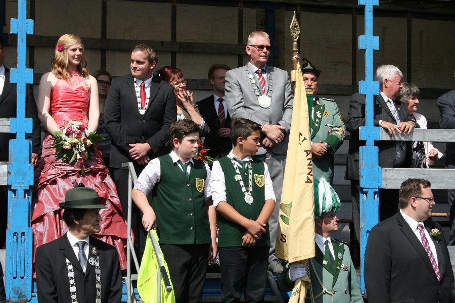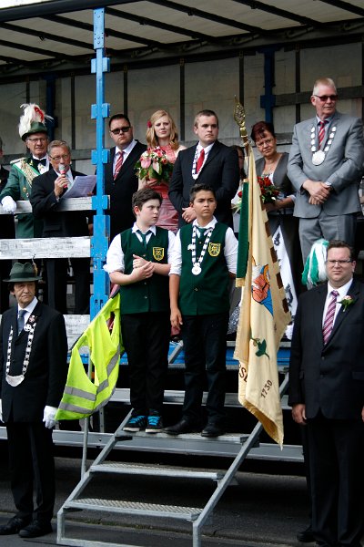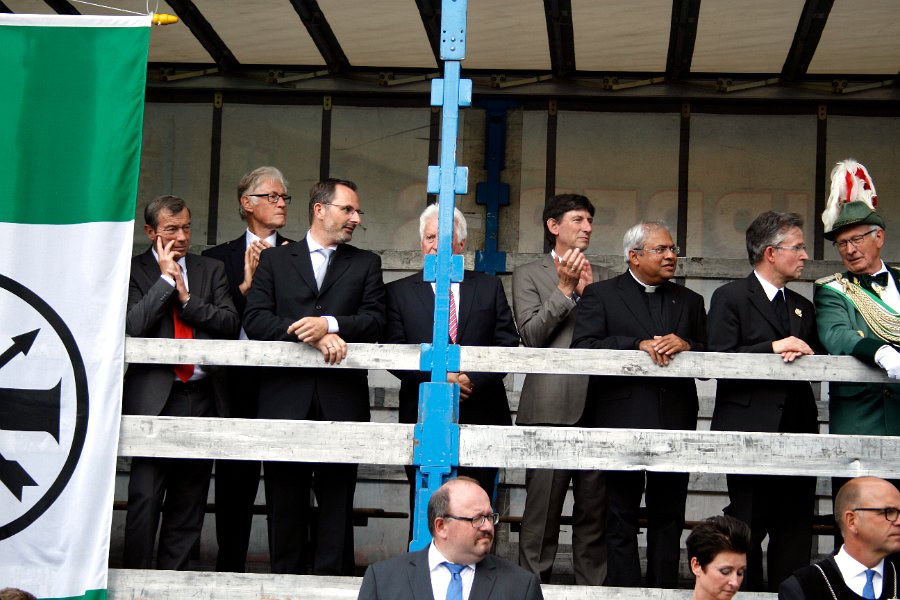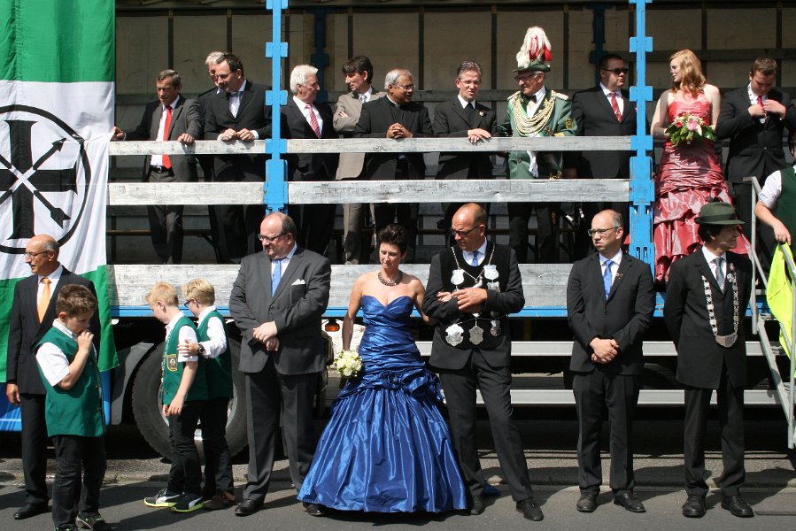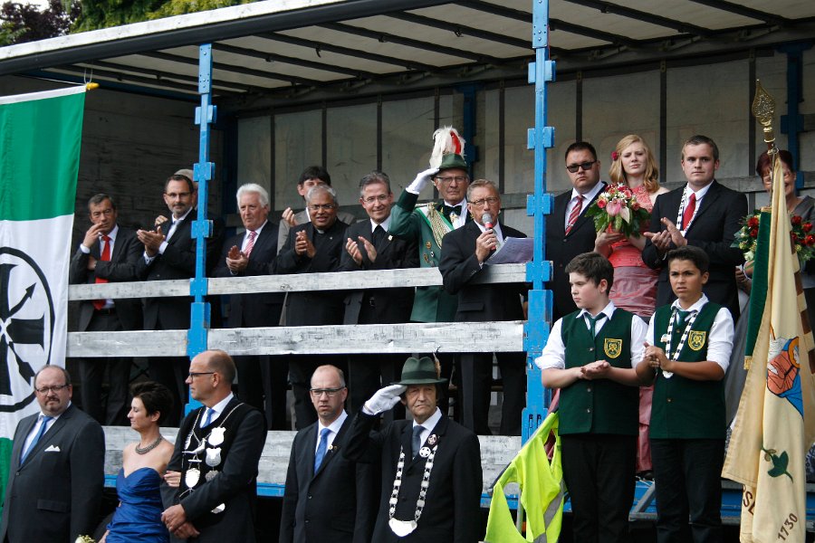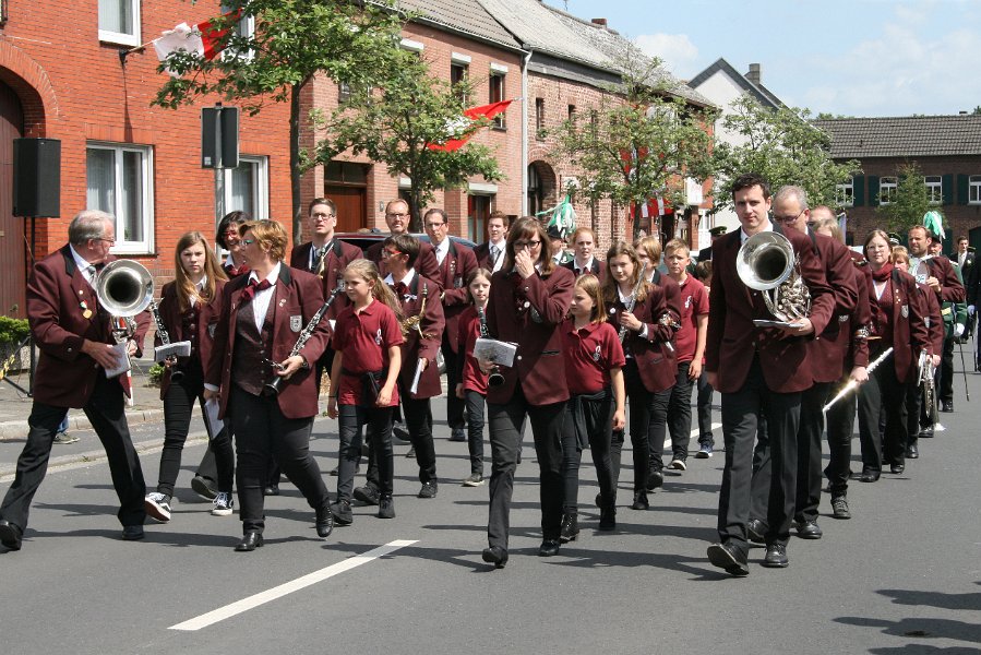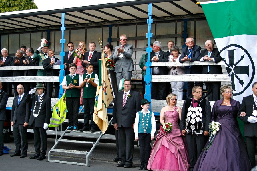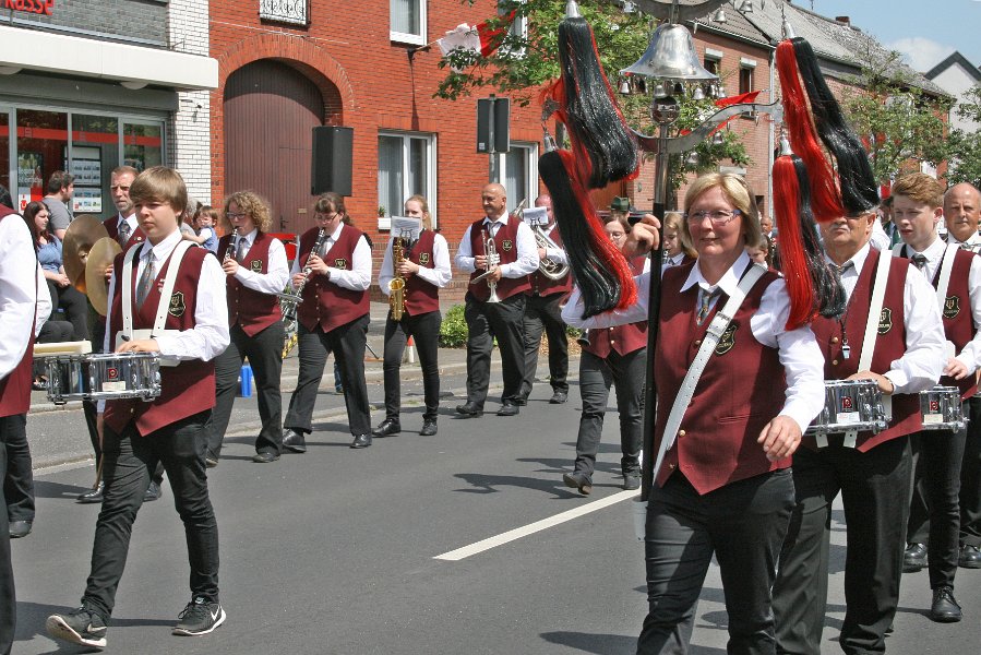 Der Sonntag brachte bestes Kaiserwetter, auf dem Dorfplatz tummelten sich die Schützenbruderschaften sowie die Spielmannsleute. Bis auf eine Selfkant-Schützenbruderschaft gratulierten alle Selfkantvereine mit ihrer Teilnahme am Festzug. Begrüßt wurde auch eine Gangelter Schützenbruderschaft.