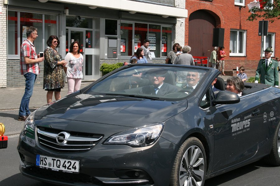 Im Mittelpunkt standen am Tage die Majestäten Erik und Roos Bakker. Die beiden hatten zunächst einen ganz besonderen Ehrenplatz und grüßten im schicken Oldtimerfahrzeug aus dem offenen Verdeck die vielen Kirmesgäste.