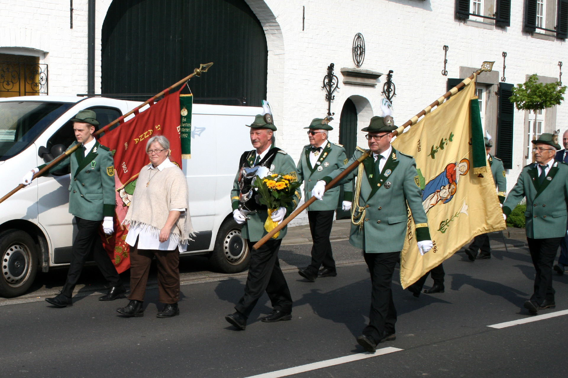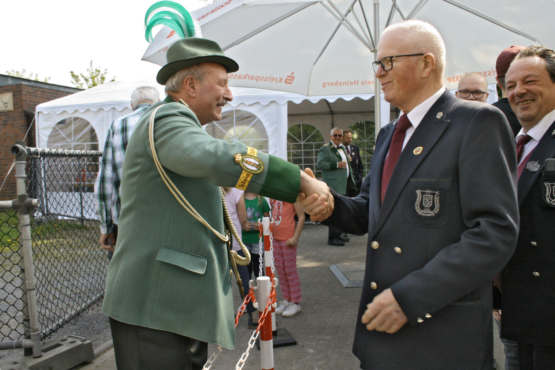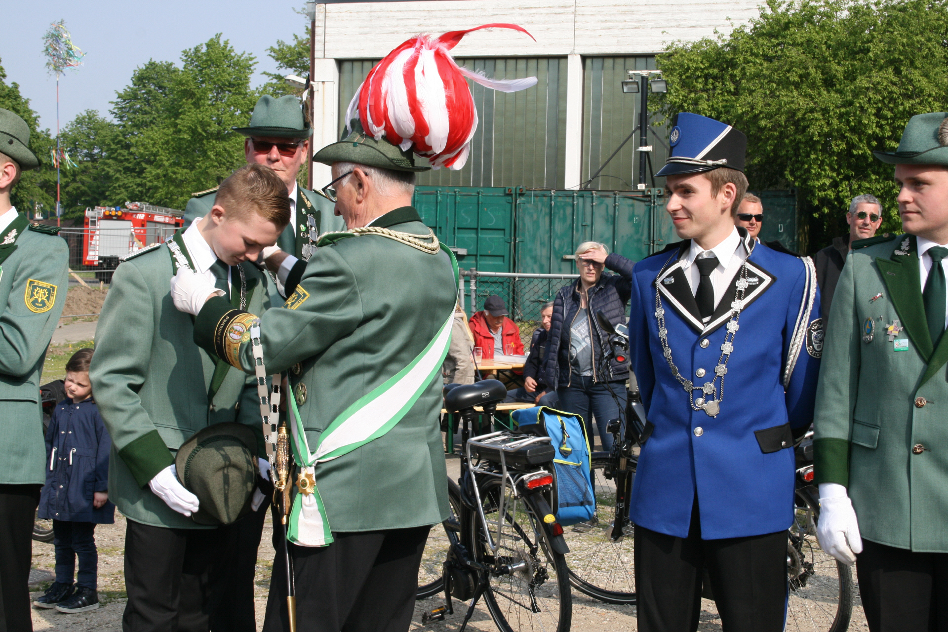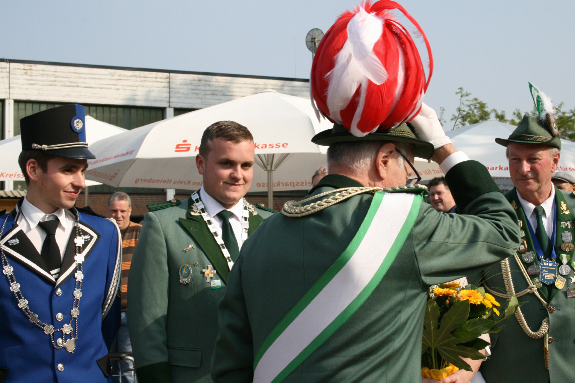 Nach dem Abholen des amtierenden Schützenkönigs Mathias Verheijen und seiner Königin Nicole Kleinjans durch die Ortsvereine begann am 1. Mai um 14.00 Uhr am Schützenhaus der Königsvogelschuss.