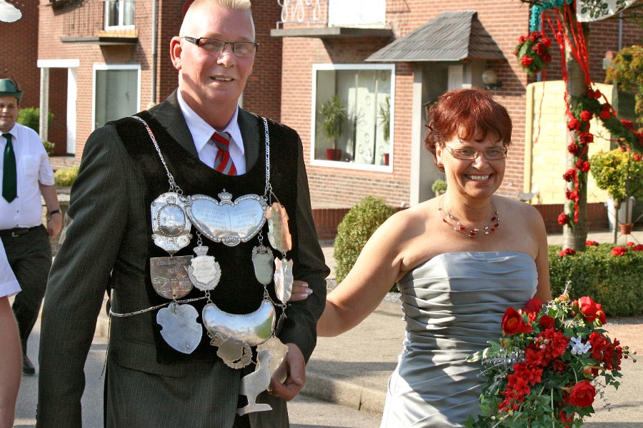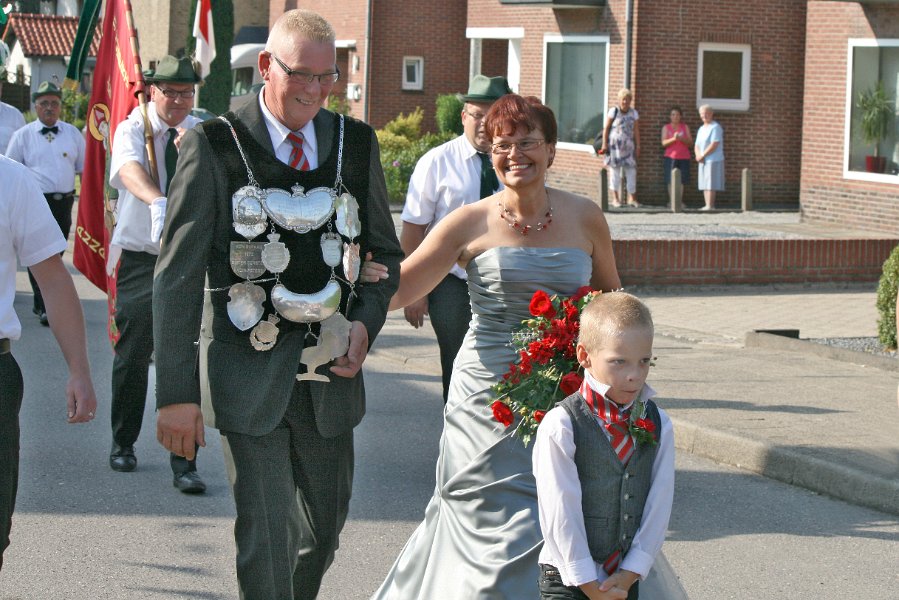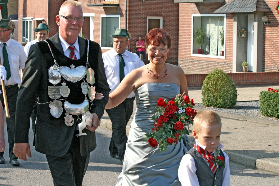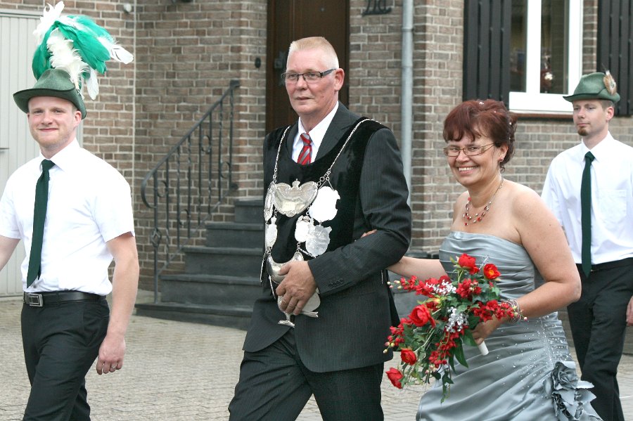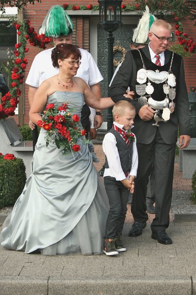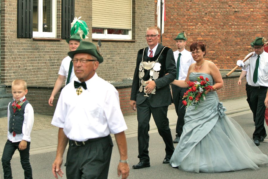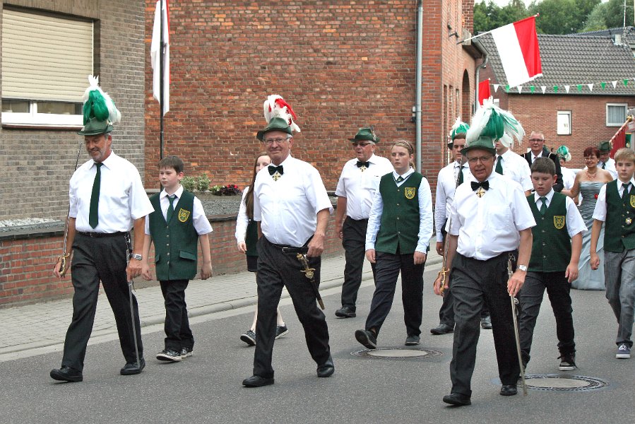 Die St. Hubertus Schützenbruderschaft und die Ortsbewohner feierten drei Tage die Anna-Kirmes. Am Samstag startete bei sommerlichen Temperaturen der Aufzug durch das Neudorf, auch bekannt als die Westerheide. Das Königspaar Math und Nicole Verheijen und ihre Adjutantinnen Myrna Verheijen und Nadia Heiligers stellten sich der Ortsbevölkerung vor. Dabei waren auch in Vertretung des Präses Pfarrer Roland Bohnen Pastor José Kallupilankal, der Dekanatsjugendprinz Nico Dahlmanns und Schülerprinz André Plum. Als Überraschung für den Schützenkönig waren zwei befreundete und in schmucken Uniformen gekleidete Bruderschaften im Aufzug, die St. Jan Schützenbruderschaft aus Nieuwstadt und die Stadtschötterij aus Sittard.