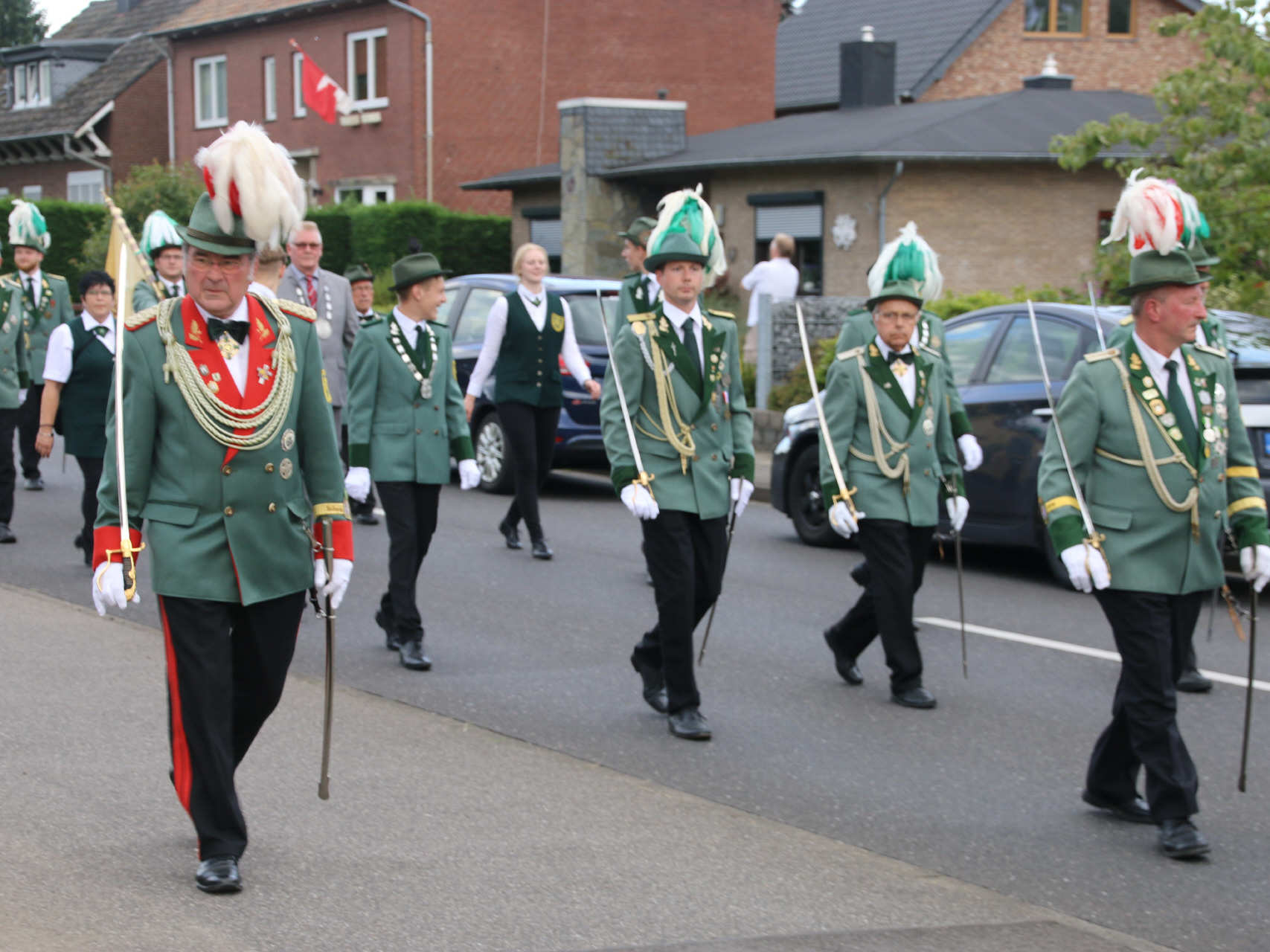 Auch der Kirmesmontag begann um 10.00 Uhr mit der heiligen Messe für die lebenden und verstorbenen Mitglieder der Ortsvereine. Pastor José Kallupilankal lud im Auftrag der Bruderschaft alle Kirchenbesucher zu einem Frühstück mit anschließendem Frühschoppen ins Schützenhaus ein.