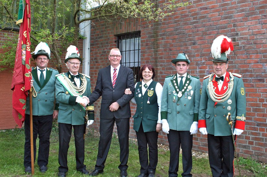 Nach der Parade trafen sich Schützen, die Musiker des Instrumentalvereins und des Trommler- und Pfeifercorps sowie viele Gäste im Schützenhaus zum Dämmerschoppen, der erst zu später Stunde endete.
